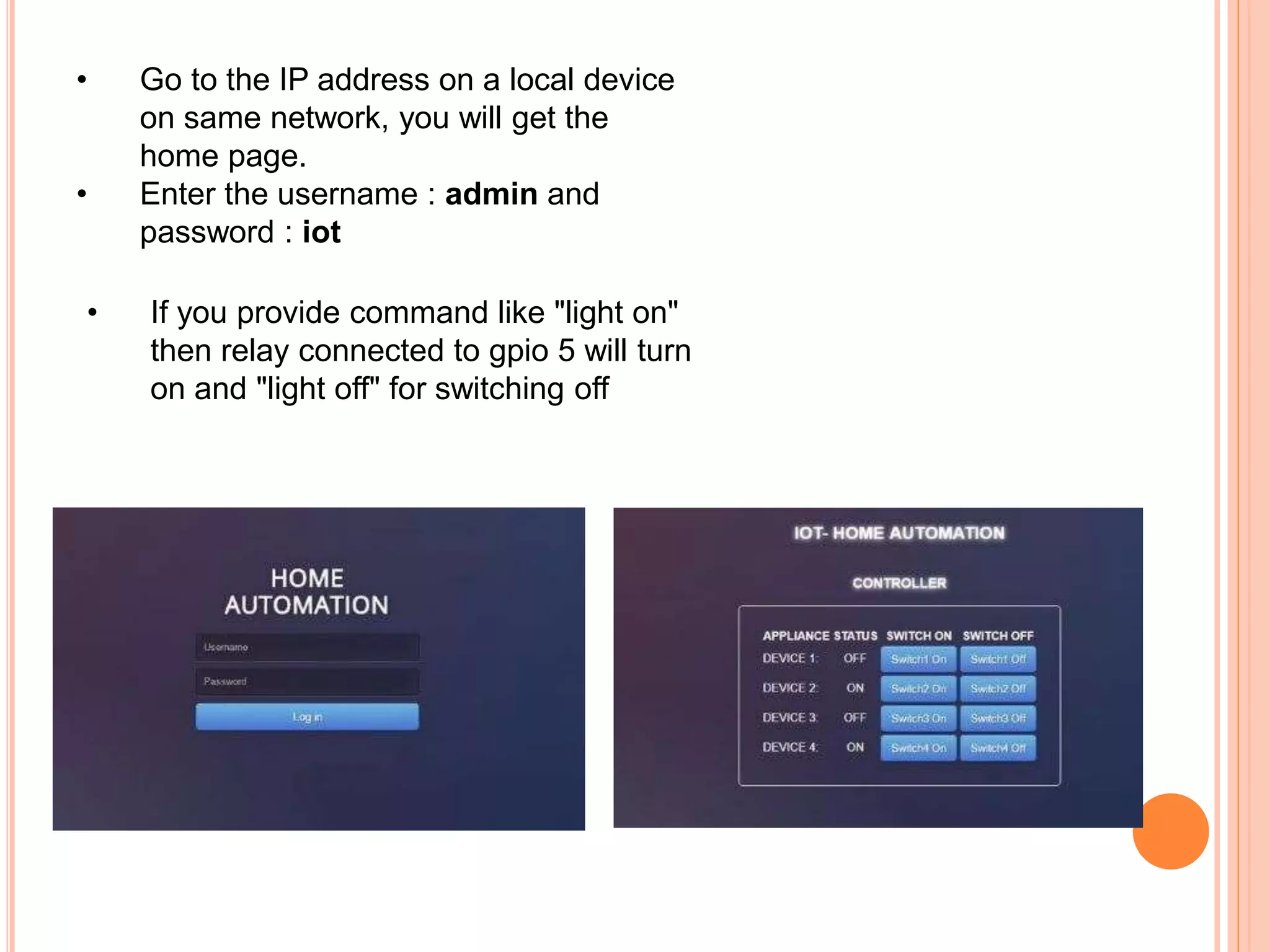 OpenHAB is a home automation and IoT gateway framework for smart homes. Similar to Home Assistant, OpenHAB works nicely with Raspberry Pi and comes with their own design tools to create a UI for your home automation product. An understanding architecture of OpenHAB: Modularity: It is realized with the bundle concept Develop an IoT home automation system with Relevant. A home should be more than just a place to liveโit should work intelligently to simplify and elevate everyday life. At Relevant, we design IoT home automation systems that don't just connect devices but create harmony between technology and your users' daily routines. The steps involved in the designing of an IoT system or application can be summarized as shown in the below figure: Let's discuss all the ten steps in the IoT design methodology with the help of a case study: Home Automation System. 1. Purpose and Requirements Specification. First step is to define the purpose and requirements of the system.